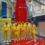 Následne bolo potrebné prejsť cez bezpečnostnú kontrolu, ktorá bola skoro na úrovni SBS, s ktorou sme sa stretli vo firme TowerCom (viď. predošlý príspevok). Po príjemnej recepcii sme boli odvedený do odľahlej budovy areálu, kde sme sa všetci prezliekli do montérok (čo nebolo úplne jednoduché, nakoľko parametre našej skupiny (výška, hmotnosť) boli vysoko nehomogénne) a presunuli sme sa na prvú časť exkurzie – návšteva strojovne. V strojovni nás uvítal hluk turbín a teplota zhruba 45°C (vonku bolo okolo 30°C). Pozreli sme všetko čo sa v strojovni dalo, s periodickými pitnými pauzami (ani alkohol, ani para, len voda)a zakončili sme to spotenou fotkou pred parogenerátormi, ktorá bohužiaľ neprešla cez BOZP kontrolu.