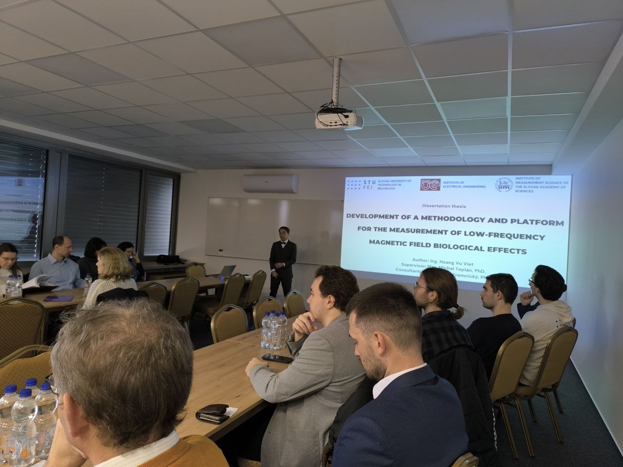 Dňa 10. 12. 2025 o 10:00 sa v zasadačke Ústavu elektrotechniky obhajoba dizertačnej práce Ing. Hoanga Vu Vieta: Development of a methodology and platform for the measurement of low-frequency magnetic field biological effects. Ing. Viet pracoval na svojej práci na Pracovisku Akadémie Vied – Ústave merania pod vedením Mgr. Teplana. Komisia pre obhajobu dizertačnej práce pracovala pod vedením
